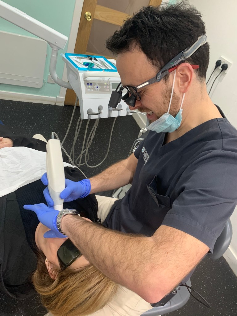 Had a good week just passed at work playing with our new scanner which is on loan from the lovely Nicolle at Straumann (dental implant company). It’s used to scan teeth so we don’t need to take any more ‘impressions/moulds’ again. Here’s me with it in action for the first time: